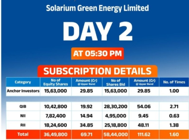 The full subscription on the second day reflects not only the company’s strong market leadership but also the increasing demand for renewable energy solutions across the country. As India continues to pursue its renewable energy goals and transition towards a greener future, companies like Solarium Green Energy are gaining significant attention from investors.
