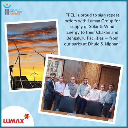 The partnership will deliver renewable energy from FPEL’s Solar Park in Dhule, Maharashtra, and its Wind-Solar Hybrid Park in Nippani, Karnataka, supporting Lumax World’s Chakan and Bengaluru facilities.