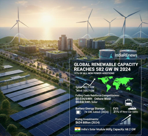Global Renewable Capacity Reaches 582 GW in 2024, Accounting for 91% of All New Power Additions